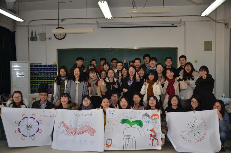 在4个时段的实训课中,李纯青教授主要围绕着职业素养开发是什么?为什么?怎么做?来讲授课程内容,并重点围绕“树立积极心态;敬业并自动自发地多做一些;无条件执行任务;培养沟通协调能力;培养团队合作能力”这五项职业素养开展有针对性的研讨交流和训练。期间,两个班的学生被随机分为6个团队,采取“分组学习、组内合作、组间竞争”的形式,每个团队按照两位老师的要求分别完成了制作队旗、绘制思维导图、信任游戏等多个任务。在最后的通关考试中,各团队表演了自编自导的短剧,展示了强大的团队合作能力和创造力。