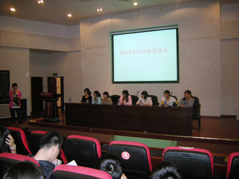 4月25日晚7点,由院团委组织、院研究生会具体筹办的2012年考研经验交流会于金海恒业报告厅举行,09级120多名准备来年考研的学子参加了此次交流会。