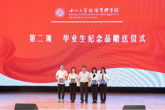 杜勇书记向硕士研究生毕业生代表赠送纪念礼物