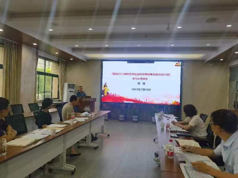 7月16日,776net必赢官网召开了党委理论学习中心组会议,专题学习《面向2035高校哲学社会科学高质量发展行动计划》。学院党委理论学习中心组成员参加会议,会议由学院党委书记杜勇主持。