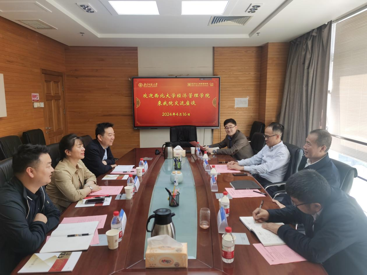 4月16日上午,调研团队拜访北京师范大学经济与工商管理学院,院长戚聿东教授、党委书记孙志军教授、副院长张平淡教授、经济系主任许敏波副教授参加座谈。戚聿东院长回顾了西北大学与北京师范大学的历史渊源,并从学科布局、师资规模等方面比较了我院与北师大经管学院的相似处,从如何协调好三个一级学科建设关系的角度对我院理论经济学发展给出建议。孙志军教授、张平淡教授分别介绍了北师大经管学院优势学科布局、人才队伍建设以及本科拔尖人才培养情况,并就政治经济学、经济史等学科面临的师资相对短缺等问题与调研团队进行了交流。