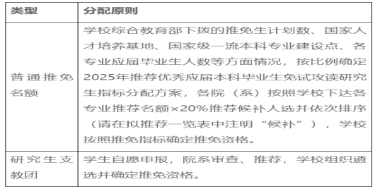 根据教育部下达的2025年推免生名额,综合考虑学科专业发展需要,我校推荐指标分配原则制定如下: