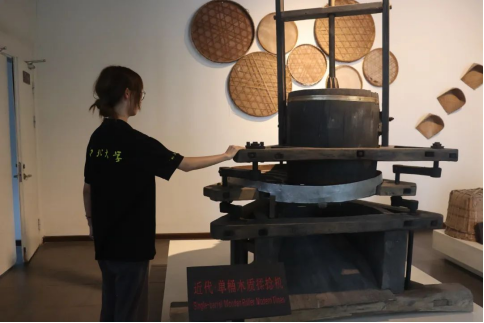 在展厅中,队员们见到了保存完好的茶叶外贸交易凭证、茶号相关凭票、国内外奖项证书等纸质史料,也亲身操作了旧时用于碾茶的机器,知道了茶叶从种植到采摘到加工成型的古法过程,体会到了祁门红茶工艺的精湛和底蕴,也更加理解为何祁门红茶能够长盛不衰、名扬四海。