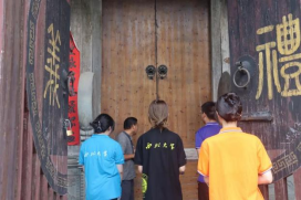 7月27日下午,为探索古村落的新发展模式,队员们抵达闪里镇桃源村。在当地讲解的带领下,队员们依次参观了古祠堂、村口廊桥、百年古树等标志性景观。在徐支书的解说中,我们了解了古祠堂背后积淀千年的人伦礼制、孝道德善等珍贵的精神文化财富,知道了脚下的青石板、人字板等一砖一瓦背后的深刻内涵,也增长了对于当地村民扎草龙、晒秋等风俗习惯的知识。