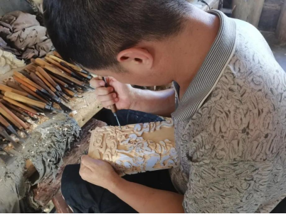 木雕工人正在雕刻木雕