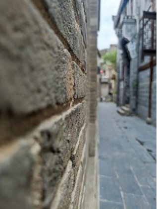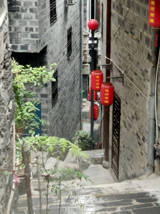 清晨时分,伴随着蒙蒙细雨,实践队来到蜀河镇,在镇政府的带领下,实践队前往蜀河古镇景区。走进南城门,走上蜀河古镇的骡马古道,转眼就可以看见蜀河古镇的建筑。这里的房屋建筑大多是木石结构,且大都建于明清时期,经过几百年岁月,有的已经风化的很严重了。但近几年当地积极开发旅游业,对这些古建筑进行了修缮,使古镇大致恢复了原貌。