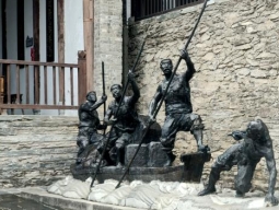 庙内纤夫拉船石像