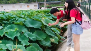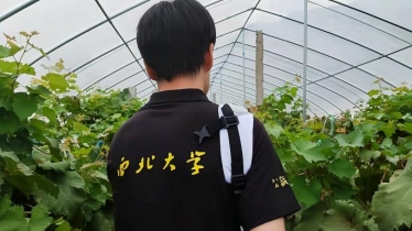 参观完荷塘基地,实践队队员前往种植大棚。三官产业园区内采取大棚养殖的方式的种植西瓜和葡萄。实践队深入大棚内部,帮助园区养殖户采摘葡萄。