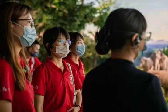队员们首先来到遗迹馆,这是金沙遗址大型祭祀活动场所的发掘地,是中国商周时期保存最完整,延续时间最长,祭祀遗迹、遗物最丰富的祭祀遗存。馆内以发掘现场的原生态保护展示,情景再现金沙时期的生态环境、生活场景等,让队员们了解到2001年以来考古发掘工作的慎密繁复过程和珍贵文物的出土原址。