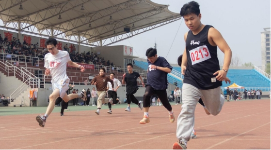 预备声猛地响起,运动员们绷紧了后背,暗暗蓄力一触即发。足尖踏地,奋力摆臂,冲刺的身影显示了他们的热血磅礴。
