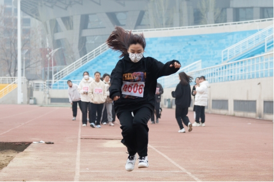 离弦似箭的助跑,石子击水般轻盈的起跳,空中的走步表演引起阵阵惊叹。和煦春风喝彩,灿烂阳光庆功。跳吧,运动员们,跳得越远胜利越近!