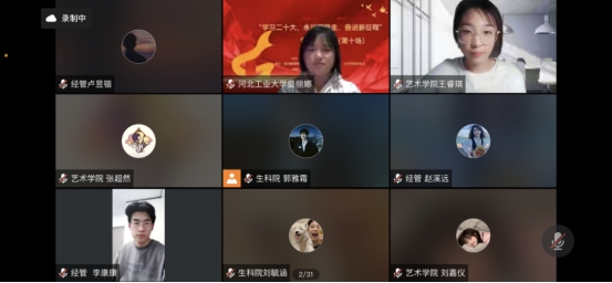 首先,由河北工业大学“红心铸魂”学生理论宣讲团李莹同学带来题为《青春心向党—党与青年》的宣讲。宣讲生动讲述了中国共产党百年以来领导中华民族复兴伟业劈波斩浪与中国共青团团结带领一代代中国青年奋楫争先的光辉历程,让与会人员对青年的使命有了更加深刻的认识。